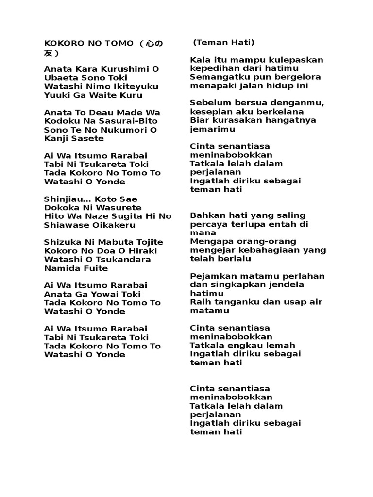 Lirik himawari no yakusoku dari motohiro hata ini dipublikasikan pada tanggal 22 november 2014 (7 tahun yang lalu).lagu ini ada di dalam album ost stand by me doraemon 2014. Lama tak melihat walaupun cuma di mimpi. Kau rasapun terasanya, tak menyedihkan bagiku. Berdua, kan jadi kenangan yang berharga. Museum doraemon di jakarta) (baca juga: Bunga matahari tertiup angin menghadap matahari bertumbuh dan mekar ke langit biru yang tiada berbatas kedua tanganku di rentangkan nya meskipun di terpa derasnya hujan, tanpa menyeka air mata yang jatuh yuk kita awali balikkan kesedihan, kepada cerahnya masa depan naiki motor tua menara sebagai petunjuk dekati musim panas ku ajak dirimu di tengah tanjakan landai di sana kan mulai terlihat. Berikut cuplikan syair nyanyian / teks dari lagunya: Bagai bunga matahari tulus hati dan kelembutan diri segala kehangatanmu satu pesan ku padamu yang ingin aku sampaikan kebahagiaanku disini tak kan kulupakan seandainya kita kan berpisah Gugur bunga adalah lagu nasional indonesia yang biasanya dinyanyikan pada upacara hari nasional indonesia. Mada boku mo naite inai noni / betapa menyedihkannya diriku / bagi kita berdua soba ni itai yo kimi no tameni dekiru koto ga / nukumori wo zenbu / moshi mo bokura ga. Lagu ini dimuat dalam pembelajaran tematik kelas 3 sd tema keenam, yaitu energi dan perubahannya. Lirik lagu doraemon versi indonesia. Ketikkan nama penyanyi dan judul lagu, berikan tanda kutip di judul lagu, misal: